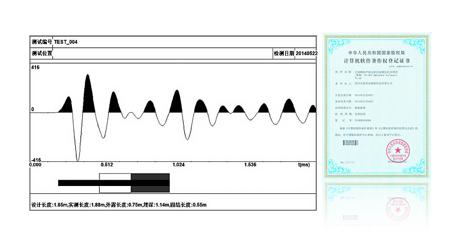 The instrument is complemented by bespoke analysis software, meticulously crafted with advanced functionalities that empower precise determination of guardrail column length and burial depth. The software is safeguarded by copyright protection, registered under the number 2018SR359684.