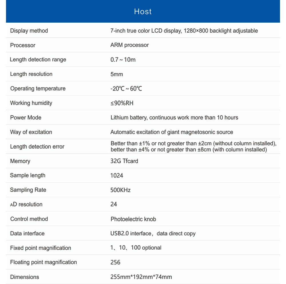 Precision and Reliability: The TS-H602(B) offers a length detection range of 0.7 to 10 meters with a resolution of 5mm, ensuring that the measurements taken are highly precise. The length detection error is optimized to be better than ±1% or not greater than ±2cm for uninstalled posts and better than ±4% or not greater than ±8cm for installed posts, highlighting the device’s reliability and accuracy.